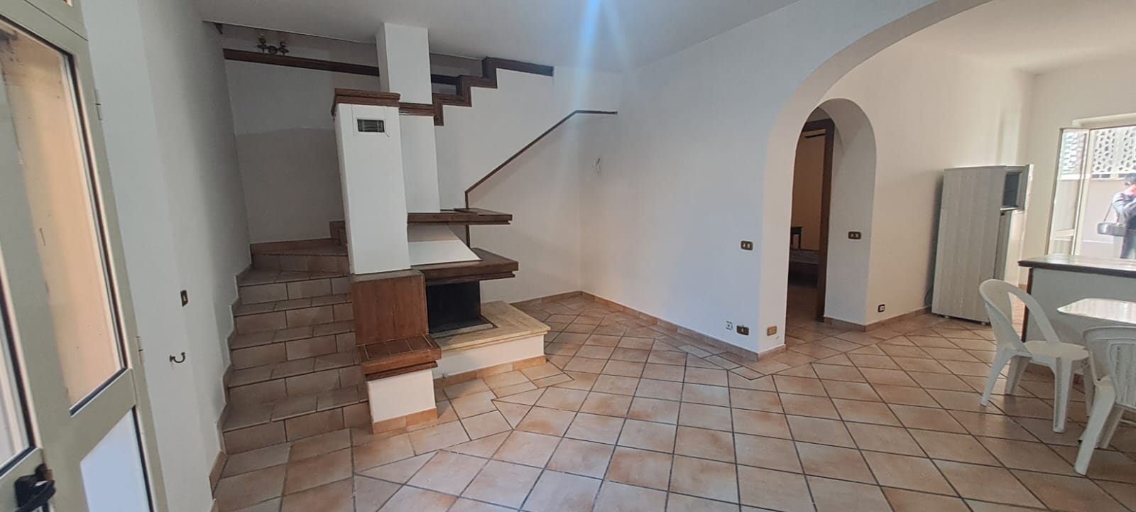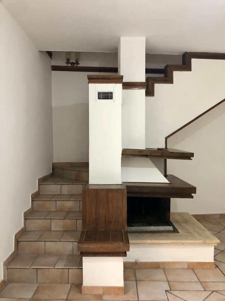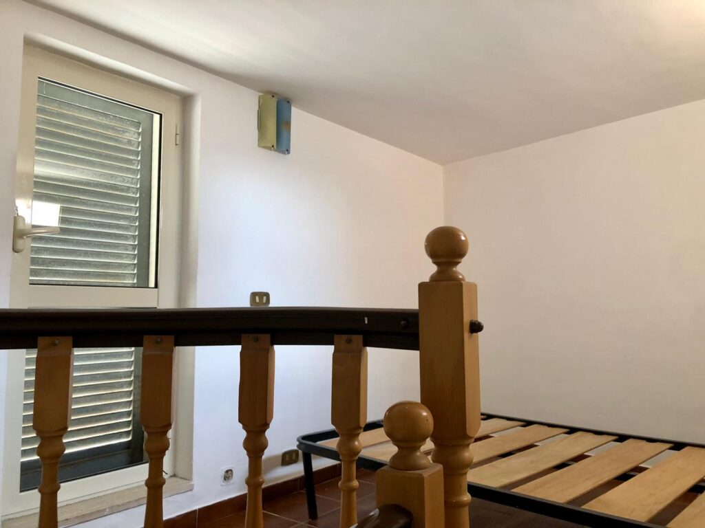 •Al primo piano con altezza regolare, un ampia sala con angolo cottura dotato di camino, due camere letto e un bagno.
